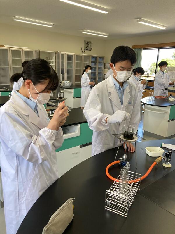 この時間は本校にて生産、収穫した、しそジュースの原材料「しそ」を用いてpHの実験を行いました。 真剣に取り組む1年生の当日の様子をぜひご覧下さい。