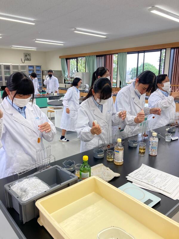 今回の食品化学実験は0.1M水酸化ナトリウム溶液の標定を行いました。進路活動にも力を入れている3年食品科学科の生徒の頑張る様子をぜひご覧ください。