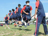 人吉高校、球磨工業高校、球磨中央高校、南稜高校で連携して取り組んでいる和綿の里づくりの一環として、あさぎり町須恵の和綿畑の草刈り、芯止めに総合農業科植物コース、男子バレー部の有志が参加しました。