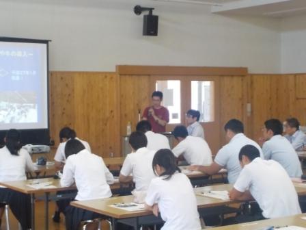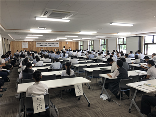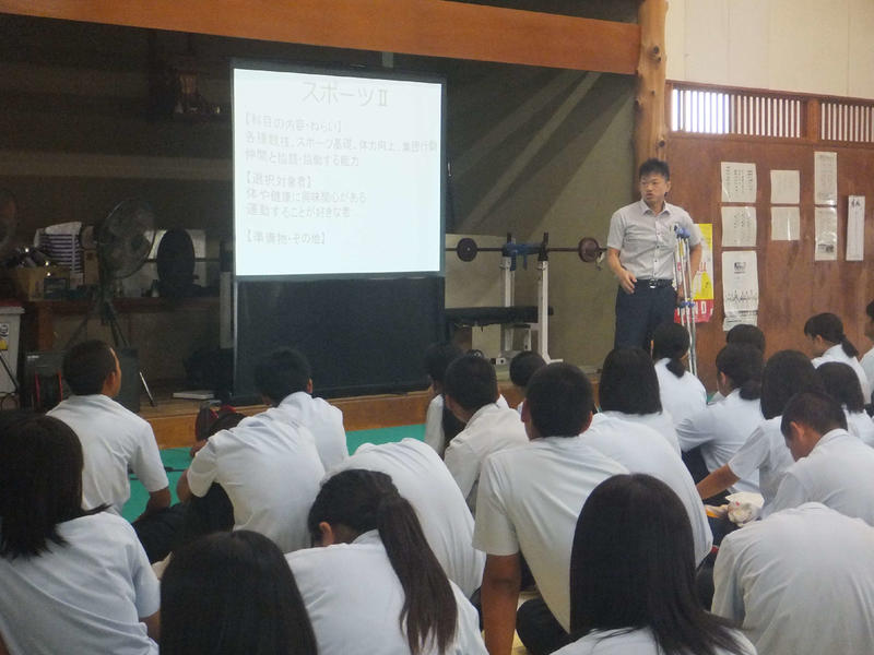 9月11日、3年生の就職進学試験主権者激励会が行われている時間帯に、1年生では武道場において総合選択科目説明会が行われました。それぞれの選択科目の担当者が内容や特徴を説明し、生徒たちは受講科目を決めて行きます。すでに、進路も含めた活動が始まっています。それぞれの夢や進路の実現のためしっかり選択してください。