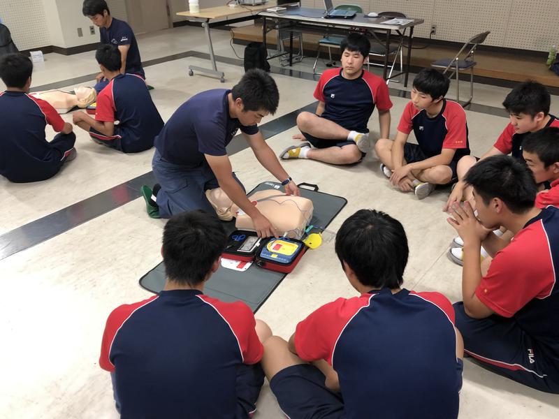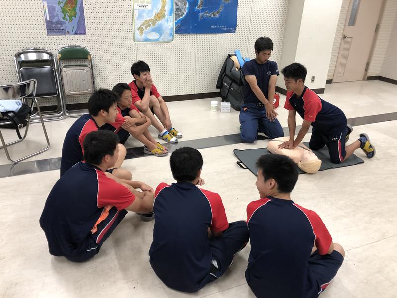 7月30日(火)から8月9日(金)のうちの8日間、総合農業科2年環境コースの生徒が林業就業支援講習を受講しています。2日目となった31日には、普通救命講習を受講し救命救急の実技を身につけました。3日目となった本日は刈払機の構造、点検や操作の習得を学びました。照りつける日差しにも負けず資格取得に向けて頑張っています。