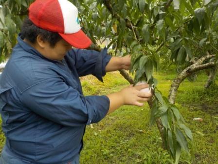 総合農業科「果樹」の実習は、今期最後の桃の収穫です。