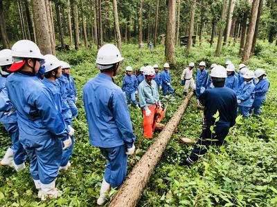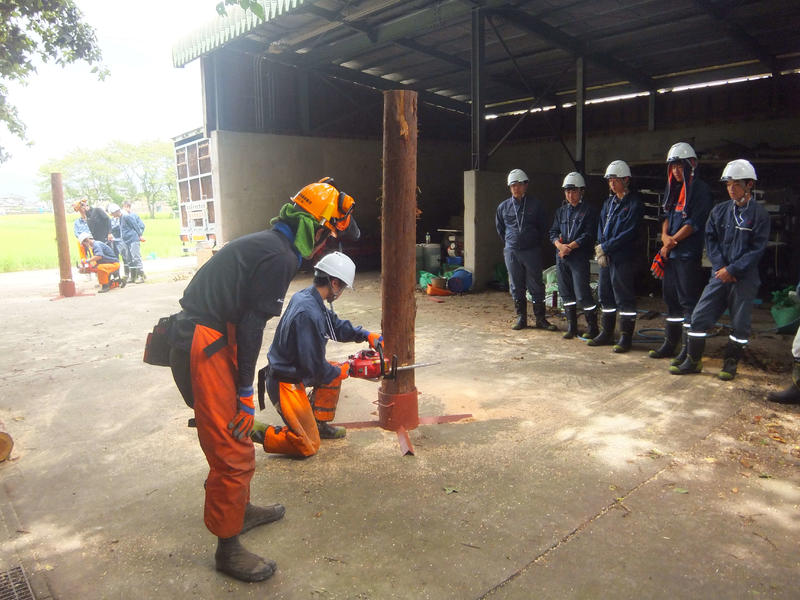 8月7日、総合農業科2年環境コースの生徒が林業就業支援講習を受講していました。今日は、チェーンソーの操作研修でした。明日は、いよいよ山に入り伐木に挑戦です。安全第一に頑張って下さい。