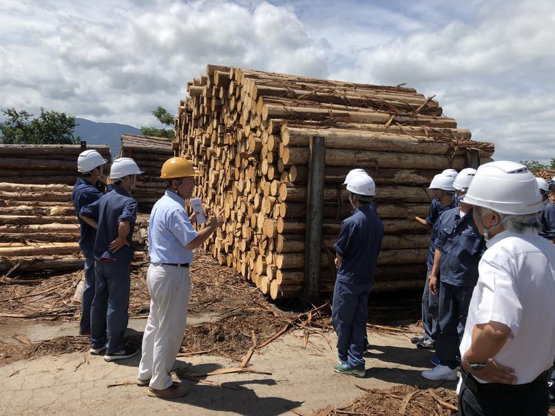 総合農業科2年生環境コースの生徒は、林業就業支援講習で林業・木材産業施設を見学しました。これまで見たこともなかった機械の迫力を目の当たりにしました。山から伐り出された丸太が木造住宅の材料になるまでの工程を学習できました。いよいよこの講習も8月20日の山林実習で最後になります。ラスト1日!!頑張ります。