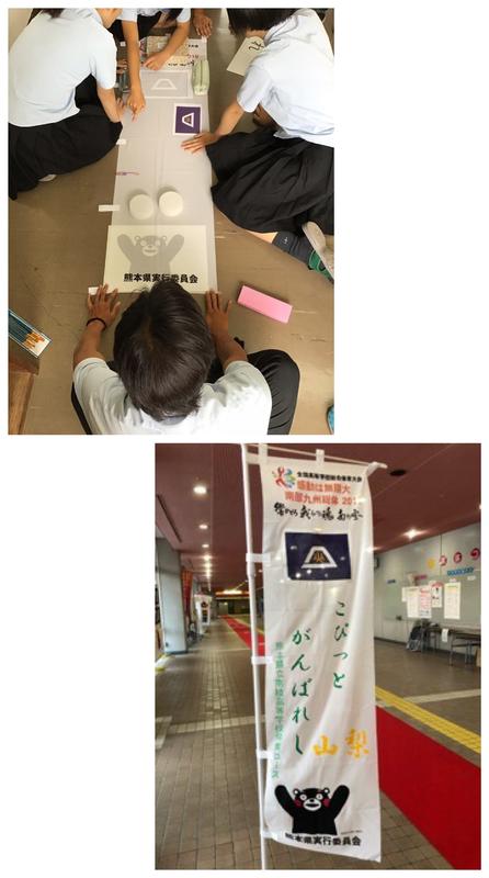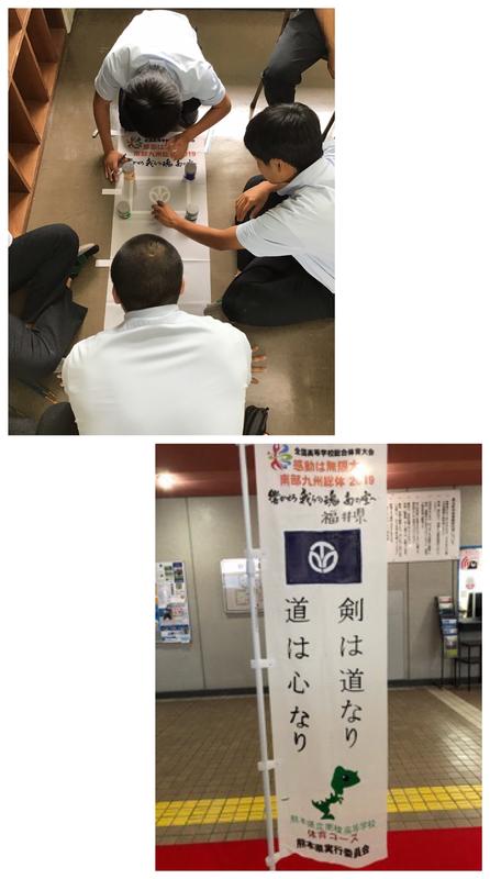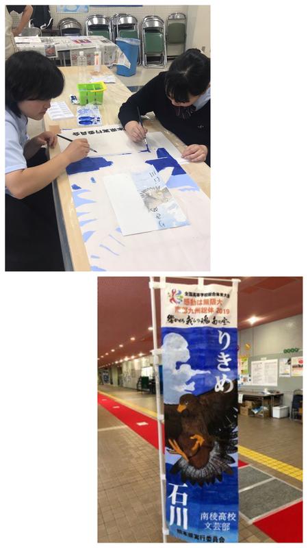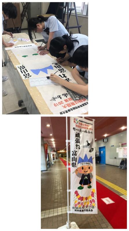 体育コース/文芸部の協力で、石川県・富山県・福井県・山梨県の選手団へのぼり旗を作成