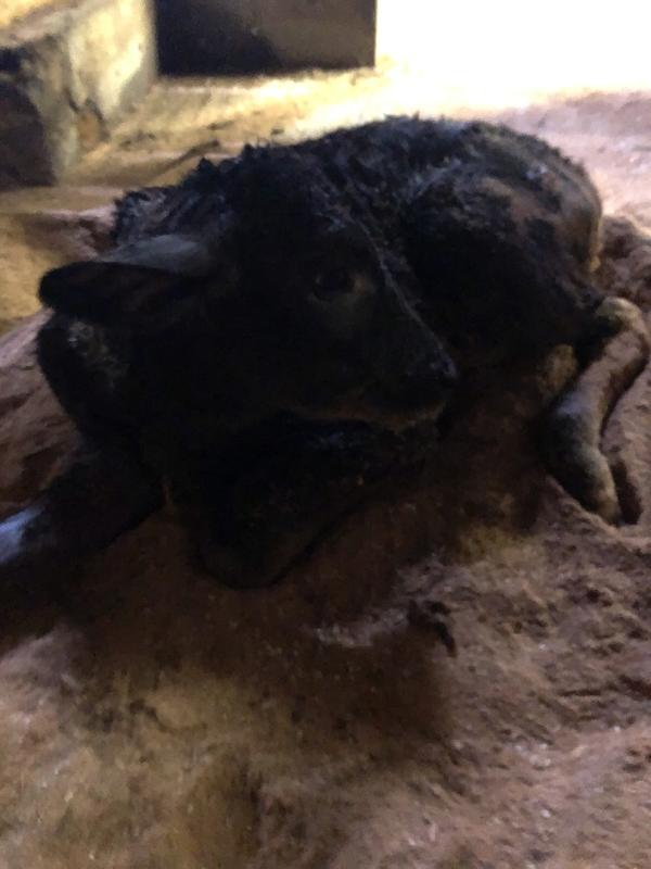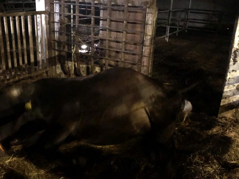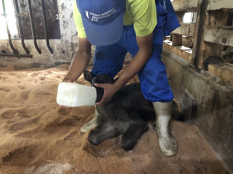 このあと、ふくこ号は何度か立ったり座ったりを繰り返し、自力で子牛を産むことができました(そのあとはバタバタしたため、写真を撮ることができませんでした。すみません。)。生まれた子牛には体を拭いてあげ、へそのおを消毒し、初乳を飲ませました。ふくこ号にはビタミン剤、強肝剤、カルシウム剤等を与え、母子分離後部屋を移動させ、後産(胎盤)が出たのを確認しました。