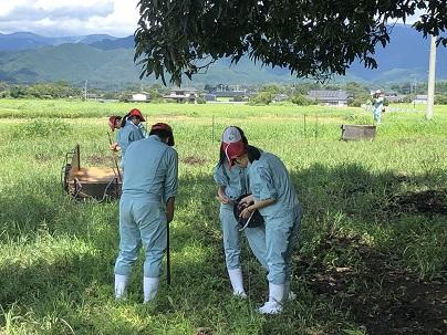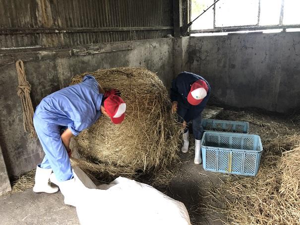 3年畜産専攻生の授業では放牧している採草地(牧草を栽培する畑。本校ではプロジェクト活動の一環で採草地の牧草を収穫した後、放牧を行います。)の整備を行いました。