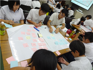 本日、平成27年度知的財産に関する創造力・実践力・活用力開発事業 地域別交流・研究協議会へ出席するため、鹿児島へ行きました。参加校からの報告、模擬授業を受けた後、ブレインストーミング(BS法)、KJ法を班別で経験しました。この学習は、問題解決、よりよいモノを造るための考え方の一つの訓練方法。本校からも5人が出席しました。帰り道、学校生活のどの場面で活かせるか様々なアイデアを出しながら、充実した一日を終えました。