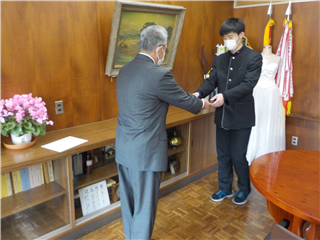卒業式後の13:00より至誠寮にて3名の卒寮式を行いました。また卒寮式後は22年間本校の至誠寮教育に携わっていただいた寮母「鳥原紀美子様」の退任式が執り行われました。
