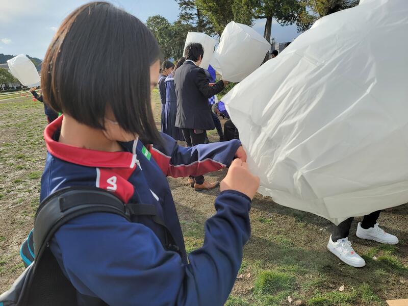 11月13日、人吉城趾ふるさと歴史の広場にて、豪雨災害からの復興を願って、ランタンフェスティバルが開かれました。本校から、希望者22名がボランティアとして参加し、ランタンを1つ1つ丁寧に作成しました。