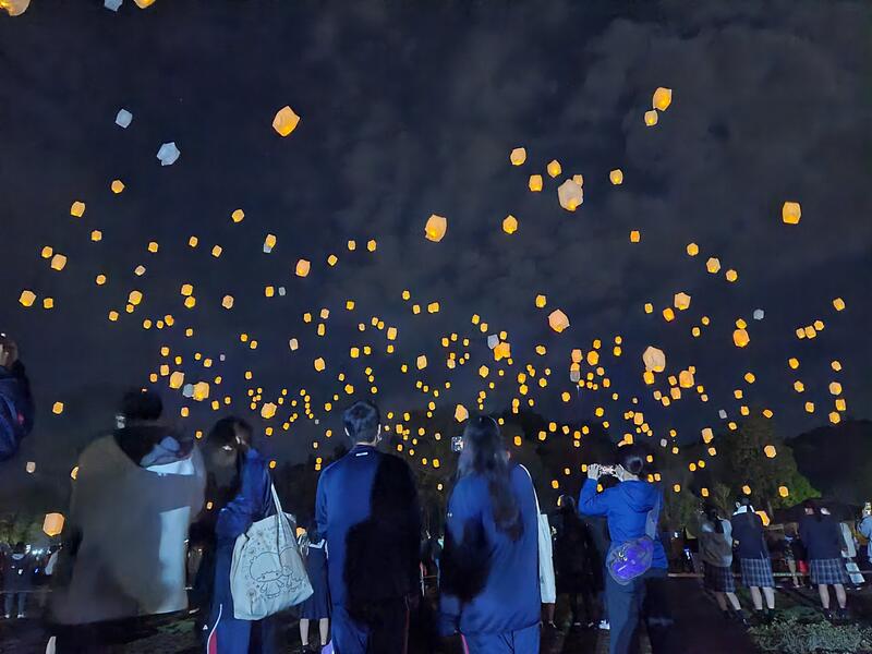 来場者1000人以上の復興への願いをのせて、ランタンが一斉に打ち上げられました。幻想的な風景に会場が感動の渦につつまれましたこれからも私たち高校生にできることをみつけて、精一杯やっていきます