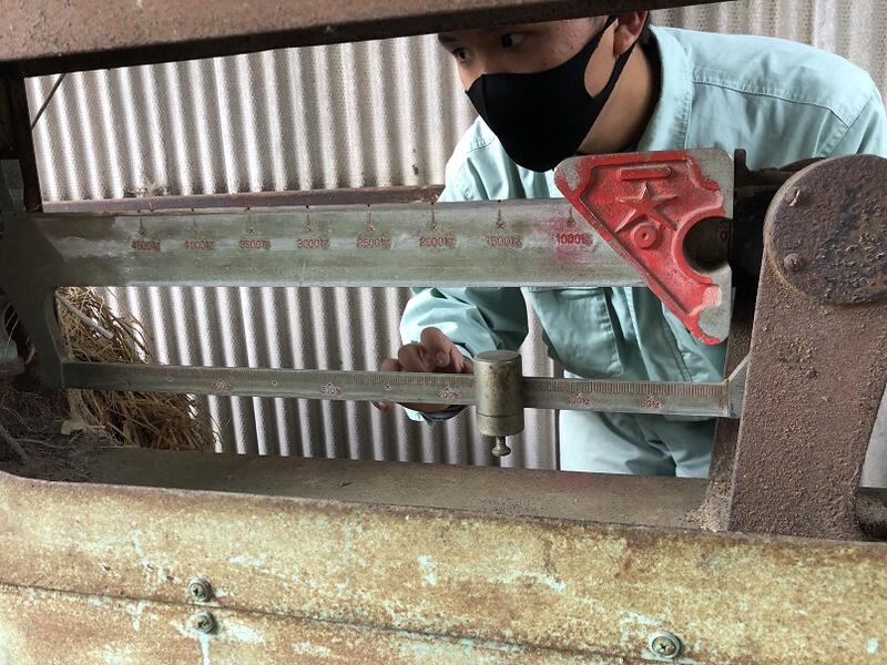 これは体重計(牛衡器)。畜産で使う専門的な器具の使い方を学びます。