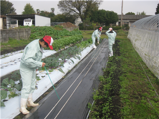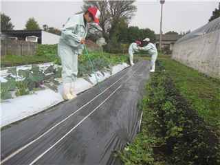 野菜専攻生8名で上手に張りました。次からは自分たちでもできるはず!!