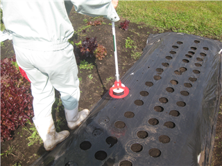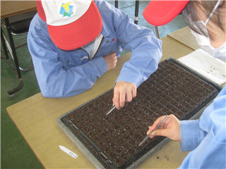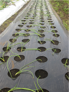 11月16日(火)総合選択の教科「グリーンライフ」内でタマネギの定植を行いました。事前にマルチを張っていましたので、採植密度の計算から行い、植えるばかりです。