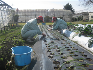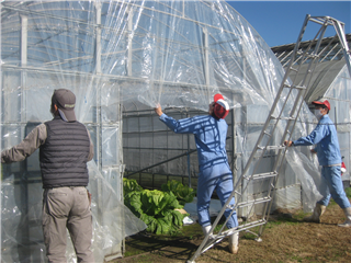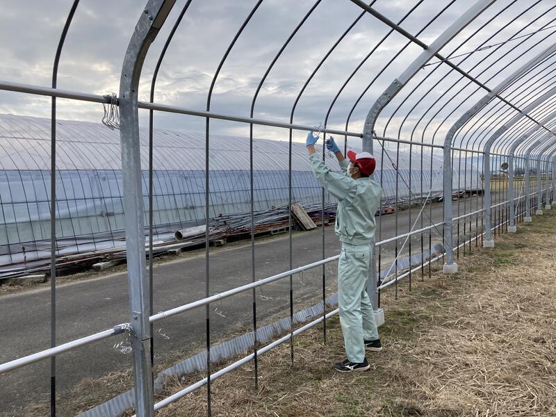 市岡いちご園様では、新規ハウスの組立てのお手伝いを行っていました。現場実習初日は戸惑うこともあったそうですが、段々と慣れてきて、農業の面白さに気づいたそうです。