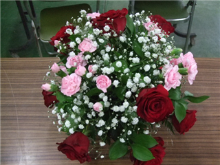 前回掲載した花束は幻の花束になりました。本日、自宅に持ち帰り、一番目立つところに飾ります。