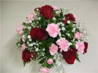 フラワー装飾技能検定3級の試験内容に基づき、規定内になるように調整しながら作成です。花束の高さ12~18cm