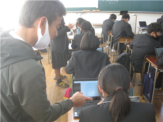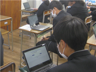生活経営科はタブレットで進路希望を入力した後に、進路について調べ学習。