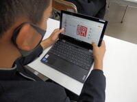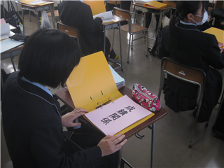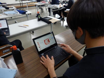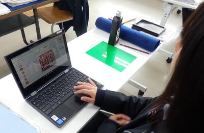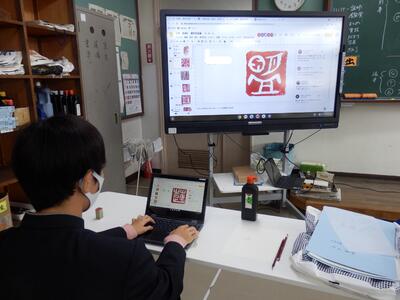 完成した印影(いんえい…印を押した紙のこと)を、各自Chromebookを活用して、写真を撮り、共有するスライドに写真を貼り付けました。その後、密を避けるため、Chromebook上で鑑賞活動を行いました。