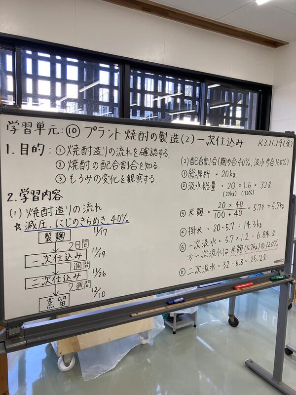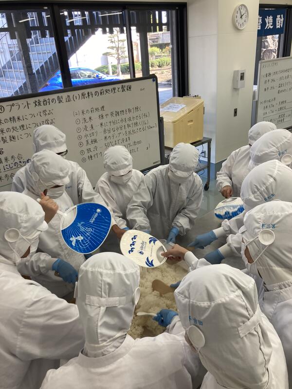 食品科学科3年生の醸造の授業において卒業前の集大成でもあるプラント焼酎製造実習を行っています。