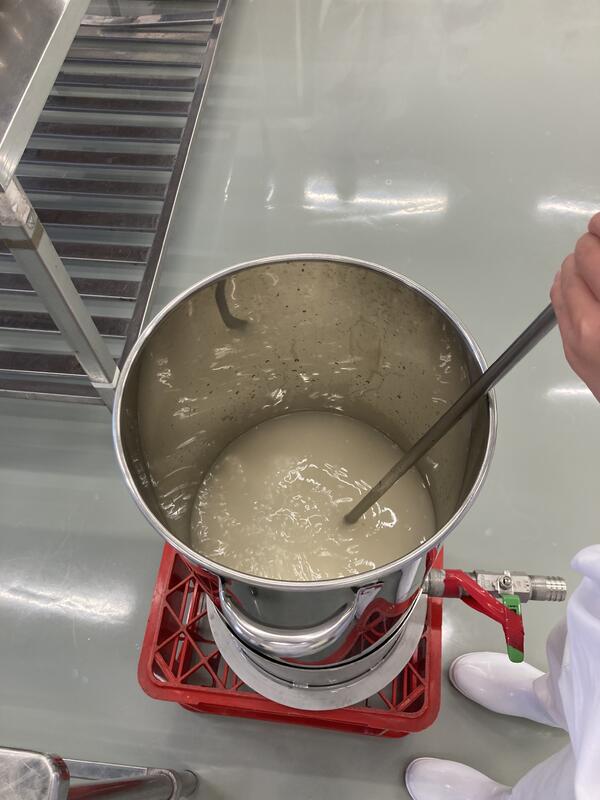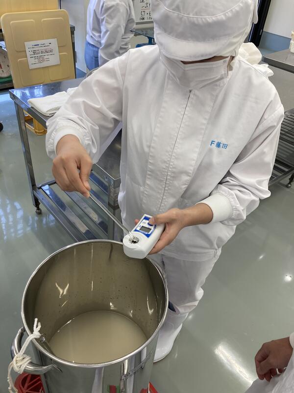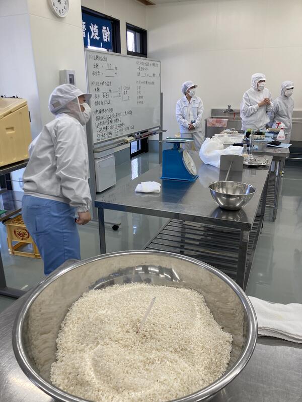 班員で協力して、温度調節を行い、製麹機に入れる前の下準備をしました^_^