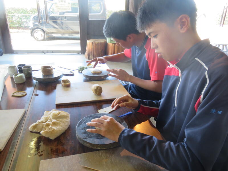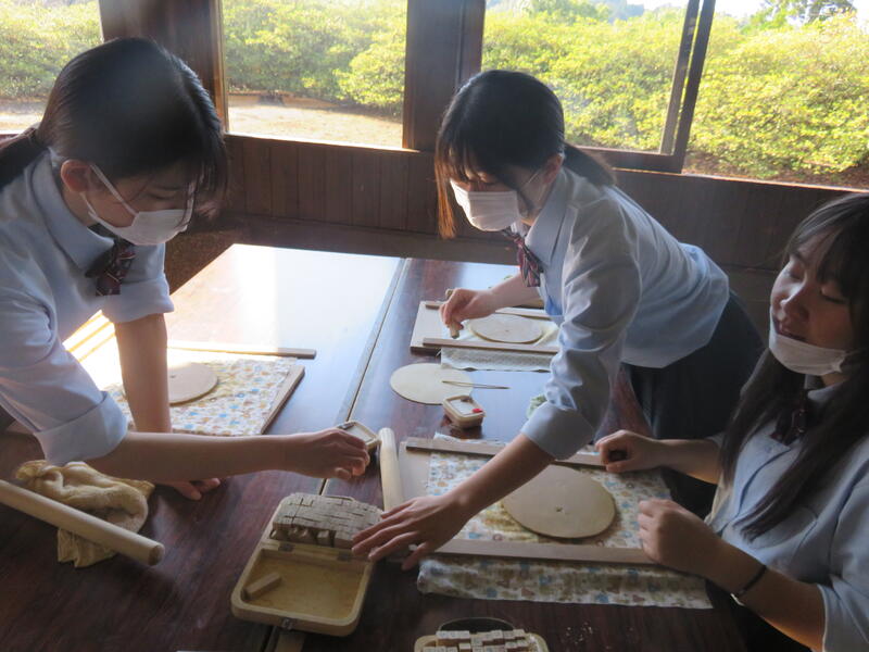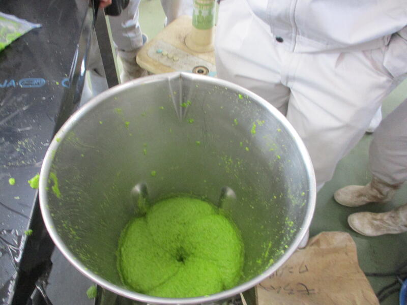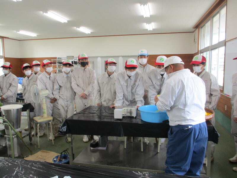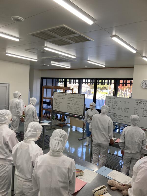 また、本日は、1.2限目の時間に、生徒達が考案した商品の試作・製造にご協力をいただいている「有限会社あさぎり町ふるさと振興社」へ伺い協同での実習を行わせていただきました。