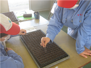 コムラ苗樹様での研修は、3日目となった本日、スギ苗の植え替え作業を行っていました。2日目までは、森林での植栽作業を行ったそうです。戸惑いながらも丁寧な作業を心がけ取り組んでいました