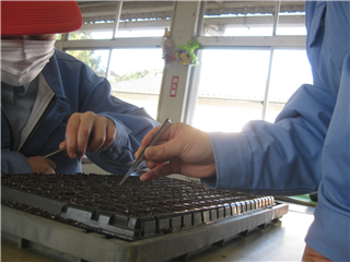 11月19日(金)本日はなんと、来年度の南稜祭に向けてシクラメンの播種を行いました。1年も前から準備を行う必要があるのです。1粒の大きさは1.5~2mm程度。集中力と根気のいる播種実習です。これから、1年間手塩にかけて育て、消費者の手元に届けます。早いけども、次年度も乞うご期待!!