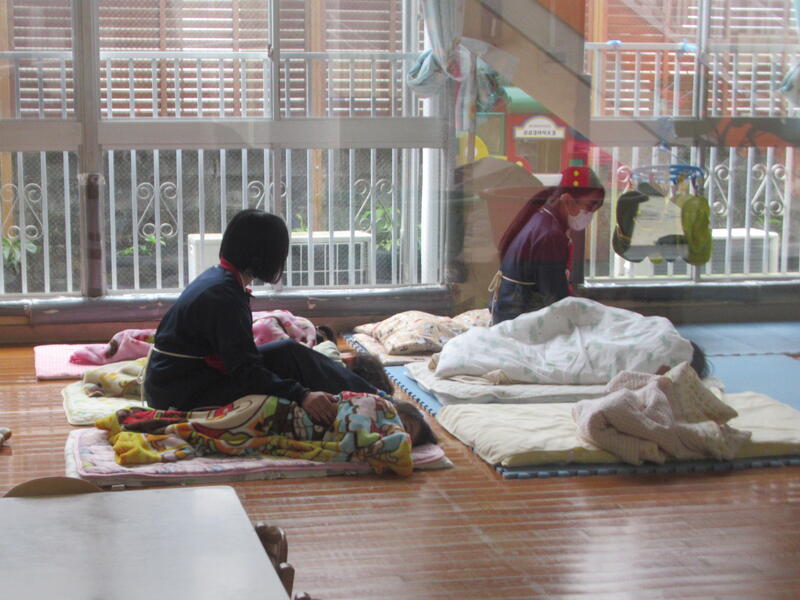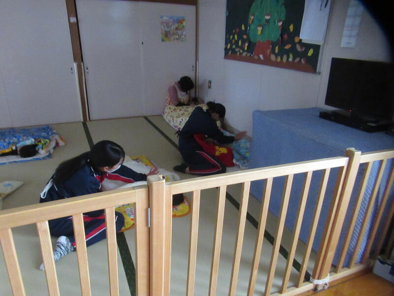 子ども達のお昼寝時は、先生達のお仕事の一部をお手伝いします。