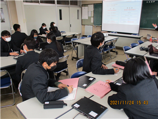 11月17日(水)本日の1学年LHRは担任の先生の時間です。実施したい内容はありましたが、それをさらにアレンジしたりしてクラスの時間を作ります。それぞれの一コマを切り撮りました。