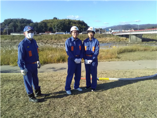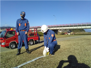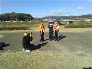 次に消防団の制服に更衣し、球磨川の河川敷に移動しました。