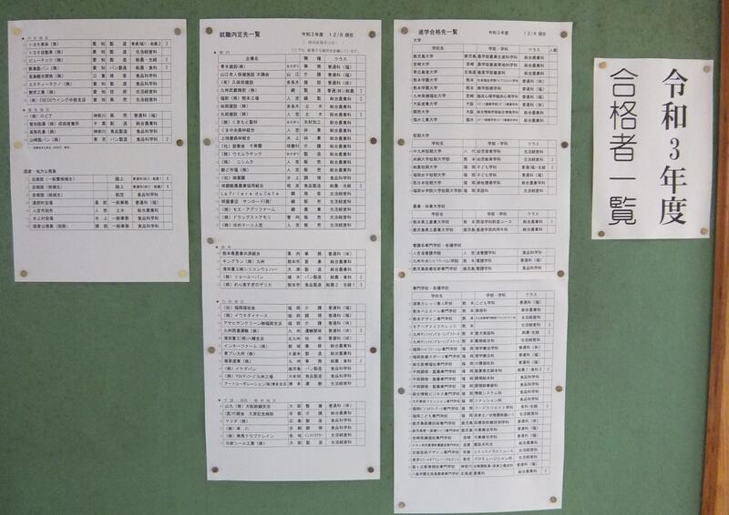 12月8日時点での進路状況が掲示されていました。今年の3年生は例年にも増して好成績をおさめています。日頃から夢の実現に向け、頑張りつづけた結果でしょう。
