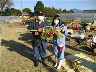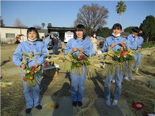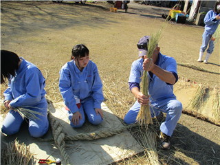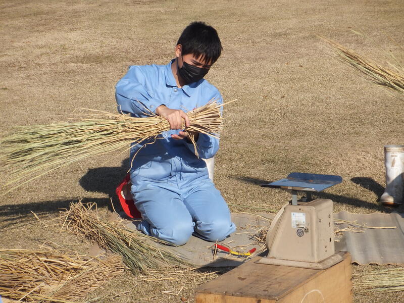 本校で栽培された南稜米の稲わらを使用し、講師の黒木様から作り方を学びました。