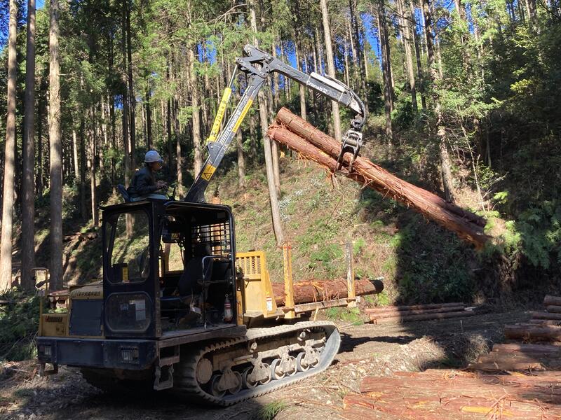 くま中央森林組合様では、人吉市上永野町の市有林にて木材を運搬・積み込み・積み降ろしをする「フォワーダ」という林業機械の操作を体験させていただきました。