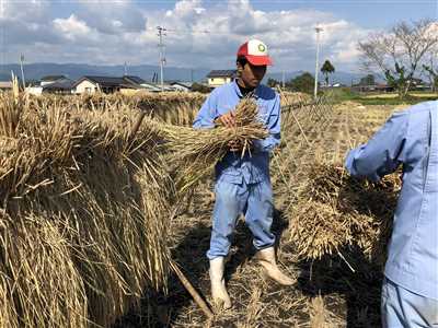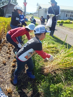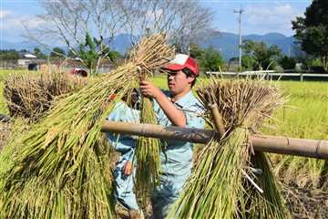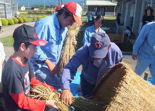 学校設定科目『球磨地域学』の内容として、稲刈り収穫体験を実施しました。