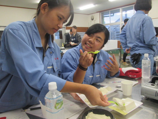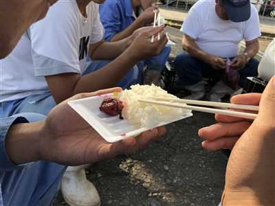 梅の加工実習で作った、はちみつ入り赤シソ梅干しの試食もしました。