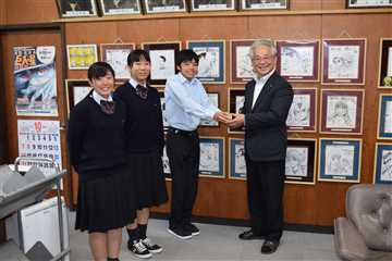 10月1日~8日に行われた「H30年度専門高校生による海外インターンシップ事業研修」に南稜高校から3名の生徒が参加しました。本研修は同窓会から寄付をいただきました。そこで、10月11日(木)、研修の報告とお土産を渡すため、同窓会会長の鶴田様のもとを訪れました。