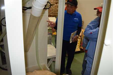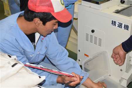 水田の広さが46ha。その広さを管理するために様々な農業機械があり、生徒達も興味津々でした。地域ブランド米の取り組みも詳しく聞くことができ、南稜米および旭一号の販売方法についても、考えが広がりそうです。
