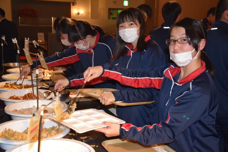 待ちに待った夕食の時間、おかず、ご飯、サラダ、デザートは全てバイキングで大満足です!