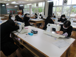 また、家庭クラブでは、7月の豪雨を受け、人吉球磨のために何かできないか考え、巾着製作を行っていました。