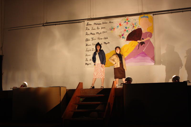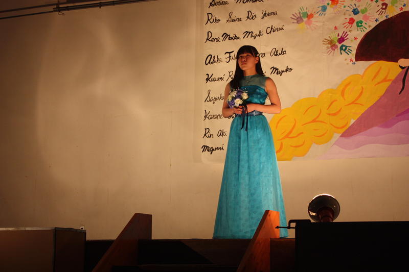 まず、ファションショーを開催するにあたって、1年生からどのようなことを学び、準備をしてきたか発表しました。