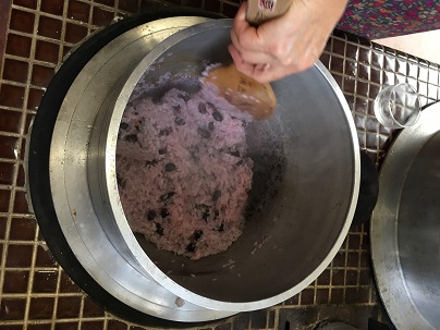 パワフルな本田さんのお話を聞きながら、調理やかまどでご飯を炊く体験もできました。作ったメニューは、黒豆ご飯のおひなちらし寿司、春の白和えソースかけ、じゃがいもだんごのすまじ汁、キクラゲコロッケでした。