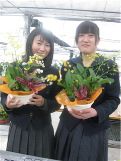 女子 優 勝 代表 2年食品科学科 佐々木 さん、村山 さん