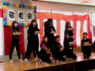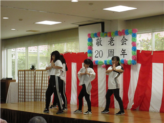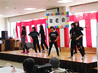 鐘ケ丘ホームの敬老会にダンス部が招待され、ステージで演技をしました。