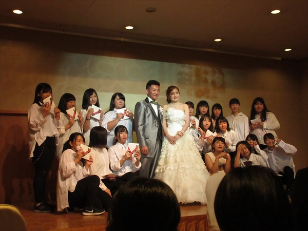 9月22日(土)南稜高校ダンス部の卒業生の和田さんの姉の結婚式にダンス部が演舞を行いました。源嶋家・和田家ご両家の弥栄をお祈りしています。新郎・新婦とも南稜高校の卒業生です。(写真掲載了解済みです)