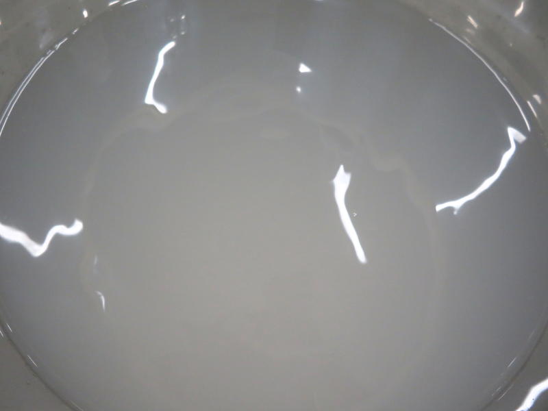 約2時間で20Lの焼酎を蒸留しました。白く濁っているのは原料由来の脂質が含まれているためです。