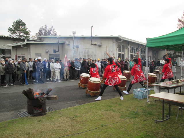 開会の前に、神殿太鼓の演舞があり、同窓会長の鶴田会長から、法被(はっぴ)の贈呈がありました。神殿太鼓の演目は、「肥後大地の詩(ひごだいちのうた)」