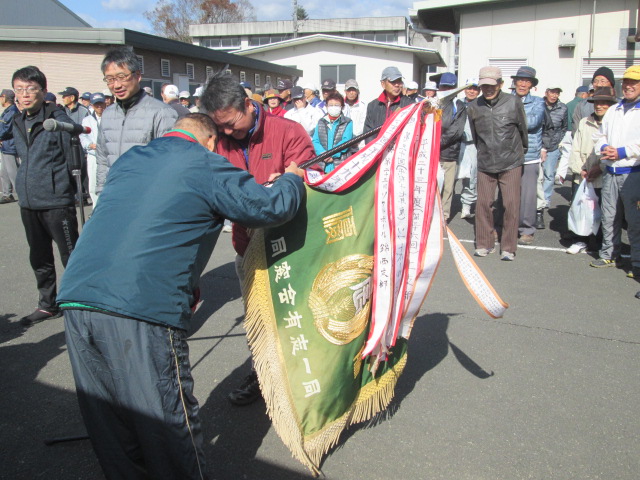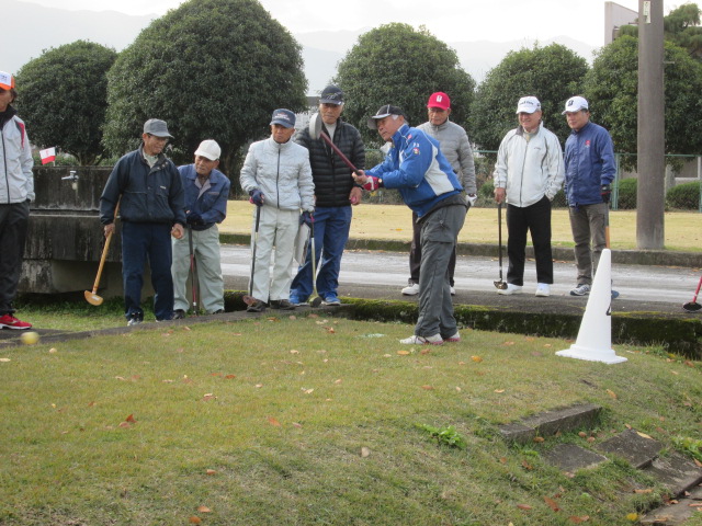 大会結果:グランドゴルフの部:①黒肥地、②深田、③湯前
