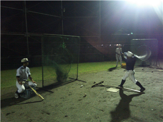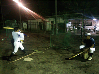 写真は打撃練習の光景です。打っているのは1・2年生、投げている