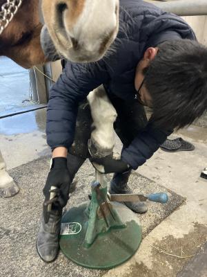 水曜の放課後と木曜日は雨で練習ができませんでしたが、その時間を有効に活用し馬の蹄鉄の交換を行いました